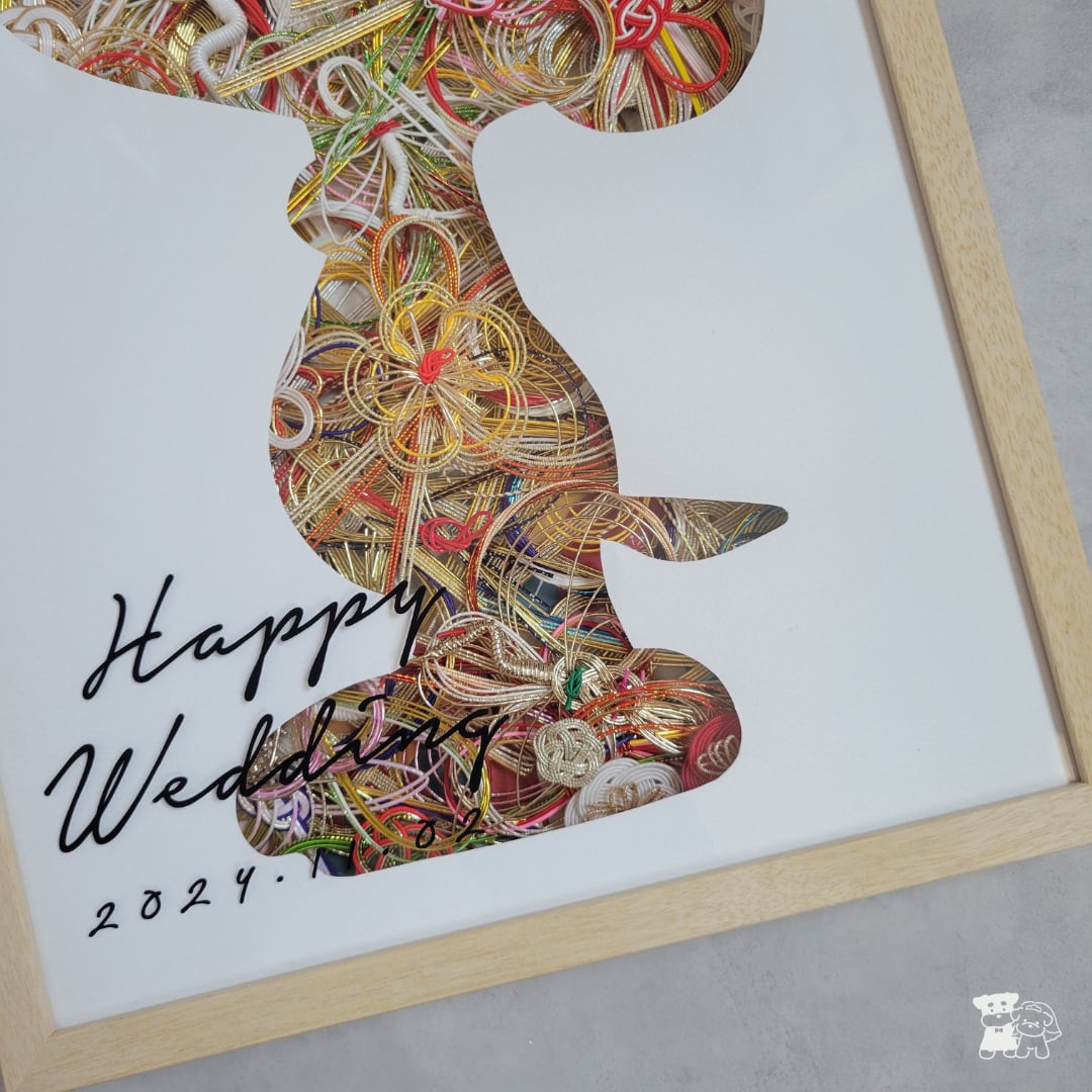 スヌーピーシルエットに水引飾りが見えるような構成にしました。