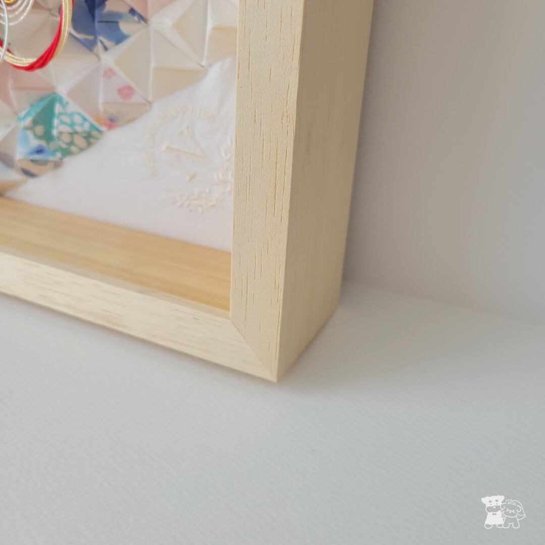 どちらのタイプも、背景にご祝儀の袋部分や招待状などのペーパーアイテムを使うことができたり、思い出アイテム(立体的なものもOK)を入れることができます。
