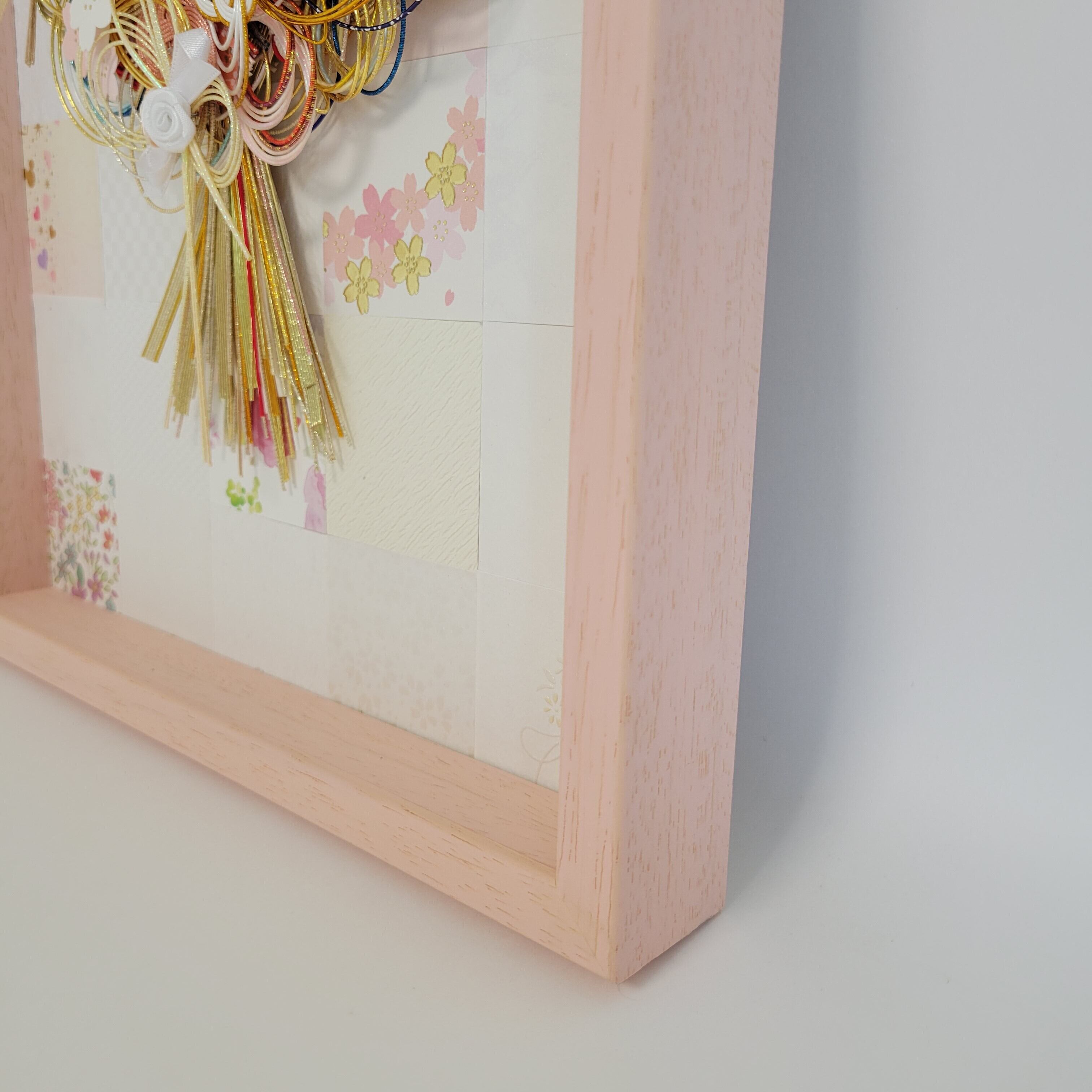 水引飾りをリースや花束の形にして入れるとインテリアになじむような作品になります。